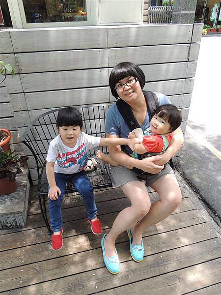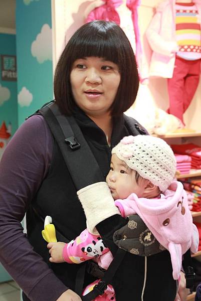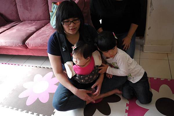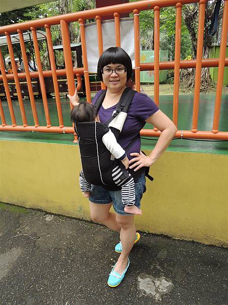 還可以揹著揹巾盤腿坐在地上玩耍,一整個很自在~哈!