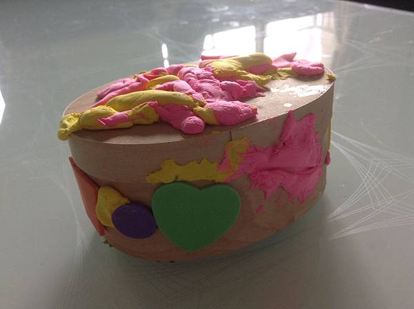 不過回到家之後, 蘋果就把寶盒上的超輕土剝下來,