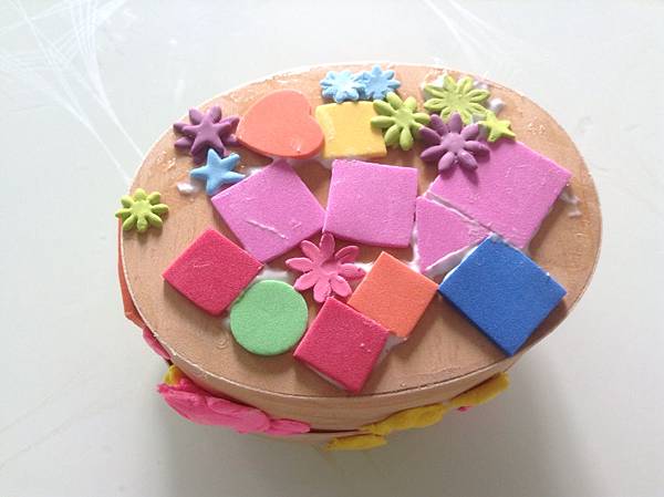除了超輕土還有一些泡棉形狀可以用白膠黏在木寶盒上。