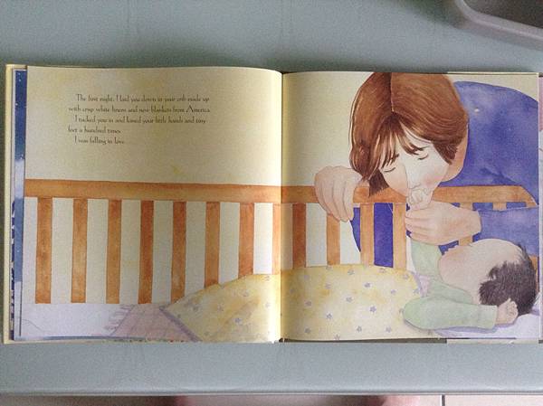 而這幅畫中美國領養媽媽溫柔的依偎著孩子、拍拍著孩子的背,