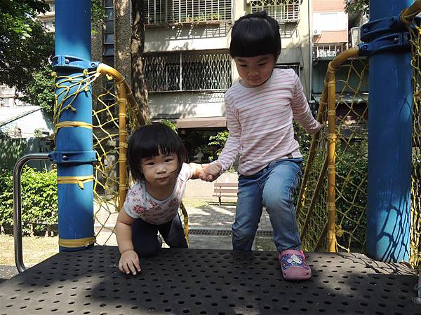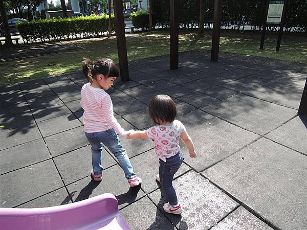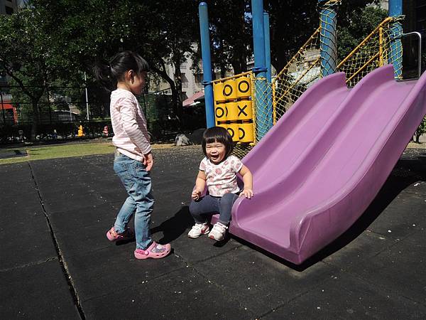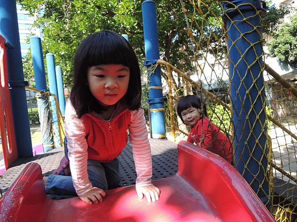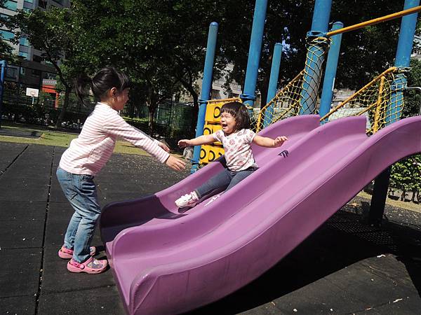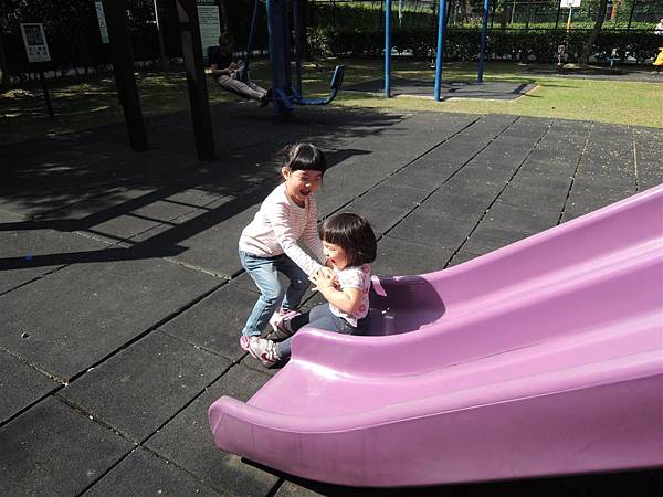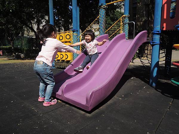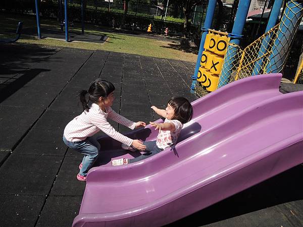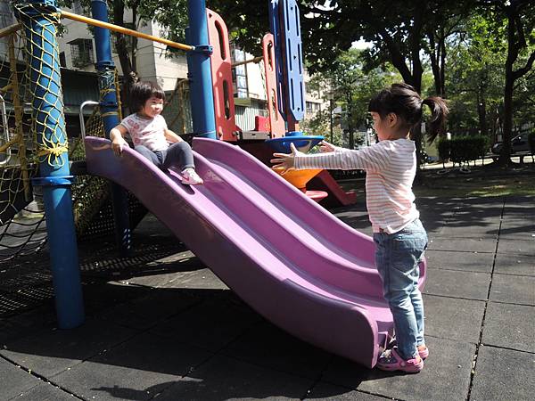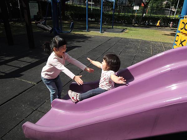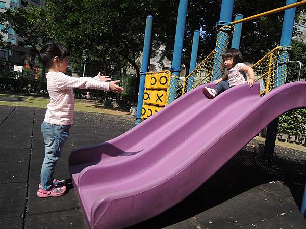 所以趁著兩個孩子起床精神正好,就來去溜滑梯。