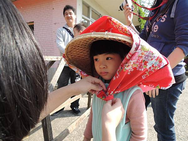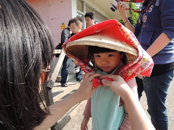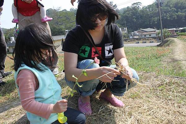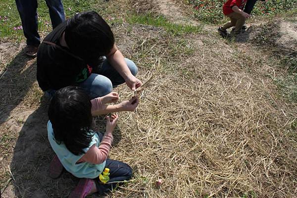 地上還有上一期收歌剩下來的稻稈,我們蹲下來作小掃把玩,