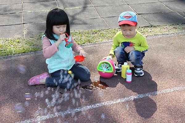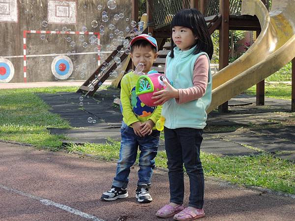 花海的對面是新埔鎮北平國小,我們也帶孩子們去國小裡玩,