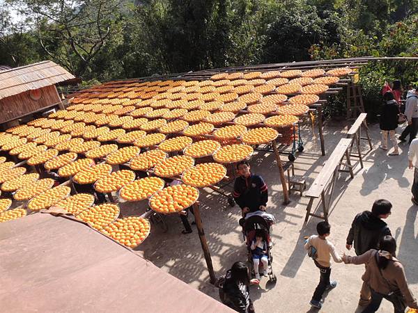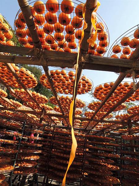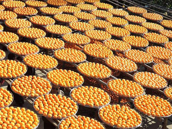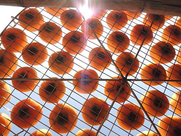 那一顆顆橘色肥美的柿子整齊的放在網架上吹著新竹特有的九降風,