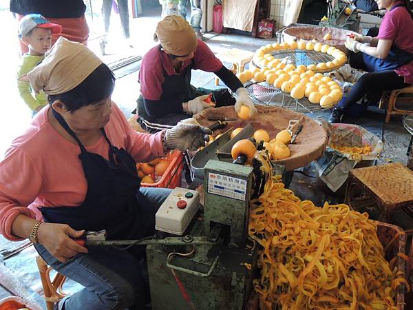 原來曬柿餅得先去蒂頭、削皮、把敲到損傷的部位削掉,才能送去曬。