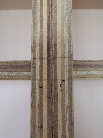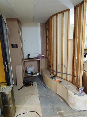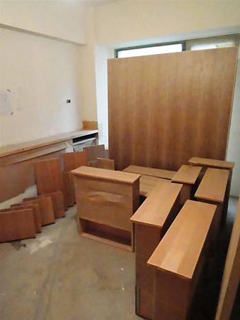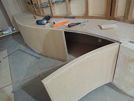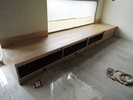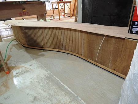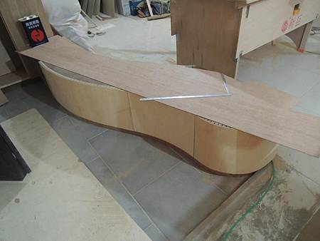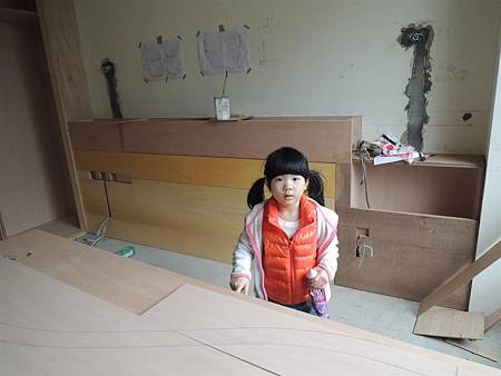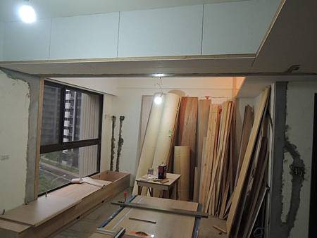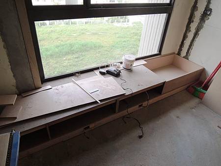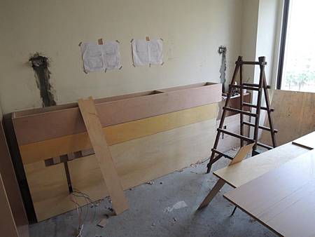 隨著木工的施作漸漸變城旁邊堆積的小塊材料。