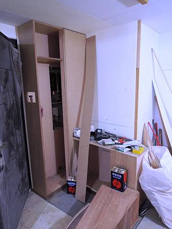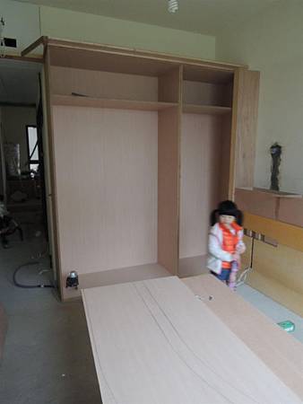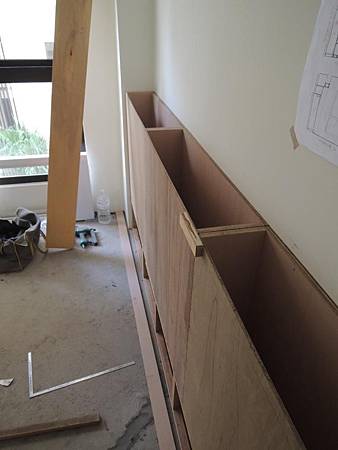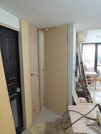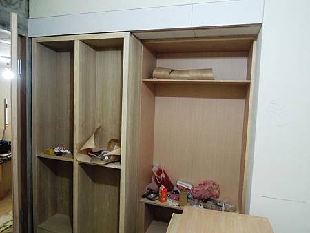 我們原本想把外層那個書櫃作成雙拉門的設計,