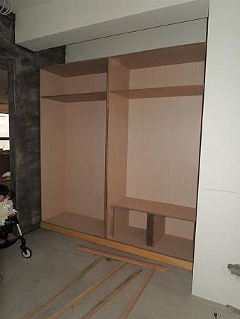所以我們在設計師的建議之下決定難以通風的櫃體內使用無甲醛板,