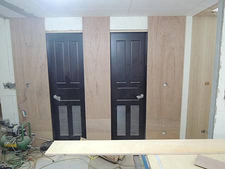 所以我們兩個廁所門都是外面再加一整片木牆,作成隱形門,
