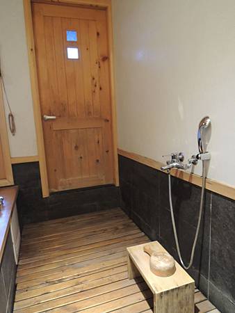 淋浴區,旁邊還有一個可以往外面陽台休息區的門,