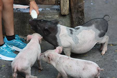後來,竟然還有逃出豬圈的小豬衝到路上討奶喝,哈哈哈!