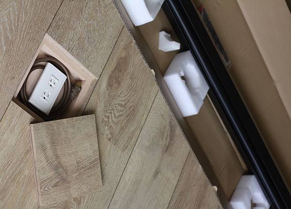 地上畫的一個小方格就是設計師預訂的投影機電源位置